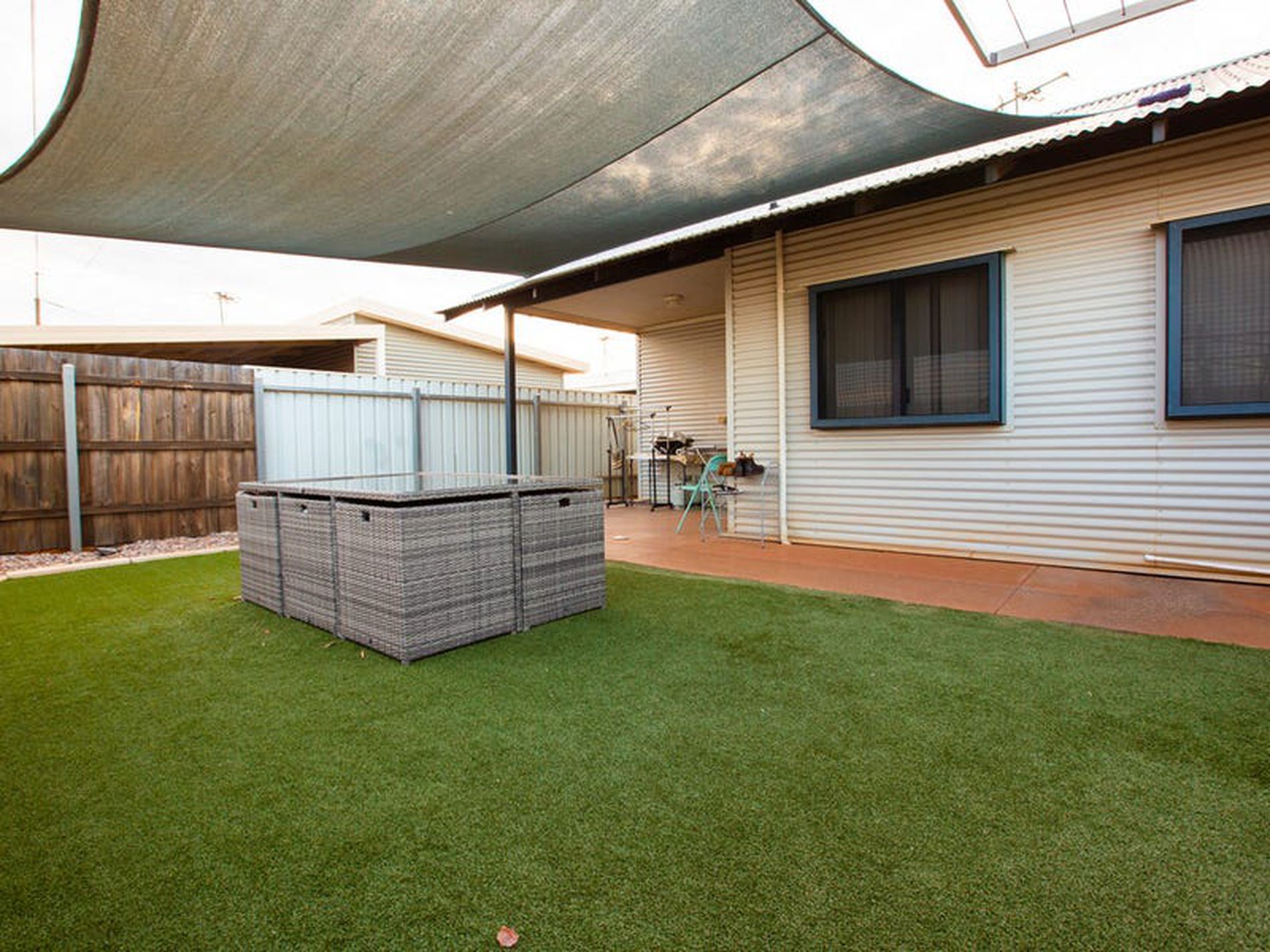 • Side entertaining area with synthetic grass