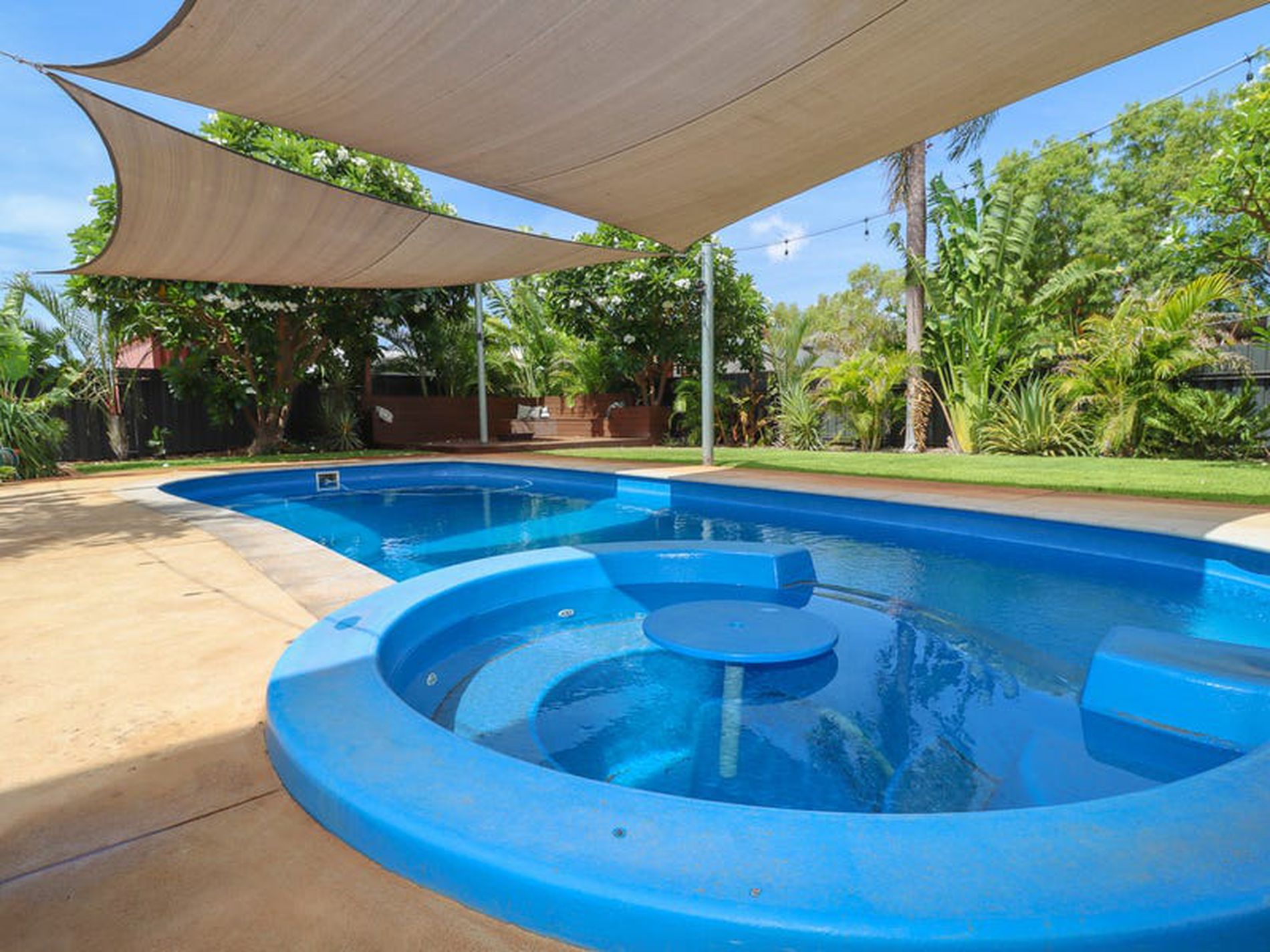 A deep underground pool with a built in Spa and Drinks Table (all recently re-fibreglassed) established shade trees, a built in fireplace deck & wrap around chairs; the ambience is soothing and peaceful. Plus a MASSIVE NEW SHED! You must see it to believe it!
