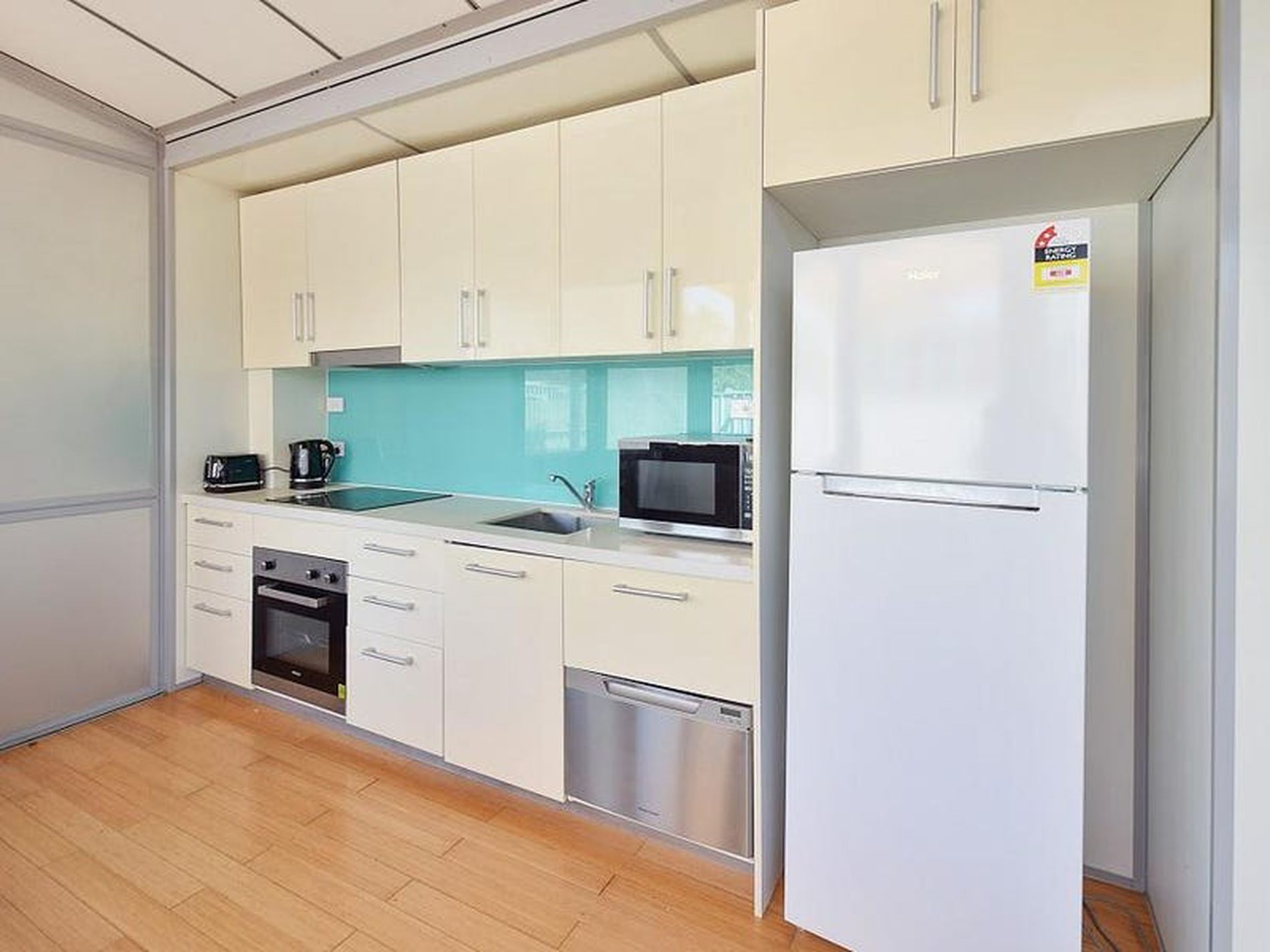 Built in 2013, this intimate complex of modular units is the definition of extremely low maintenance. With bright floorboards for easy cleaning and large windows, this units design provides plenty of ambient light to fill all corners of the open plan kitchen and living area.