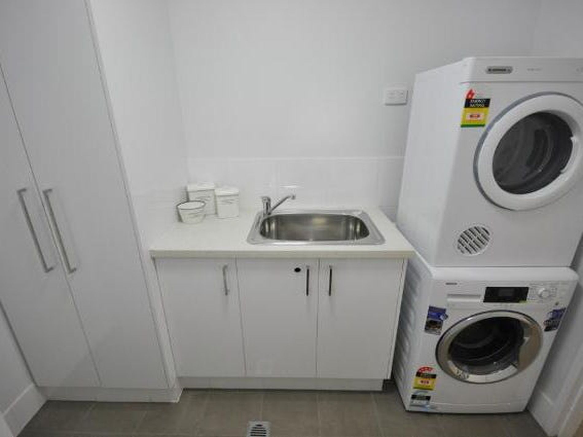- Workable laundry with space for washer and dryer