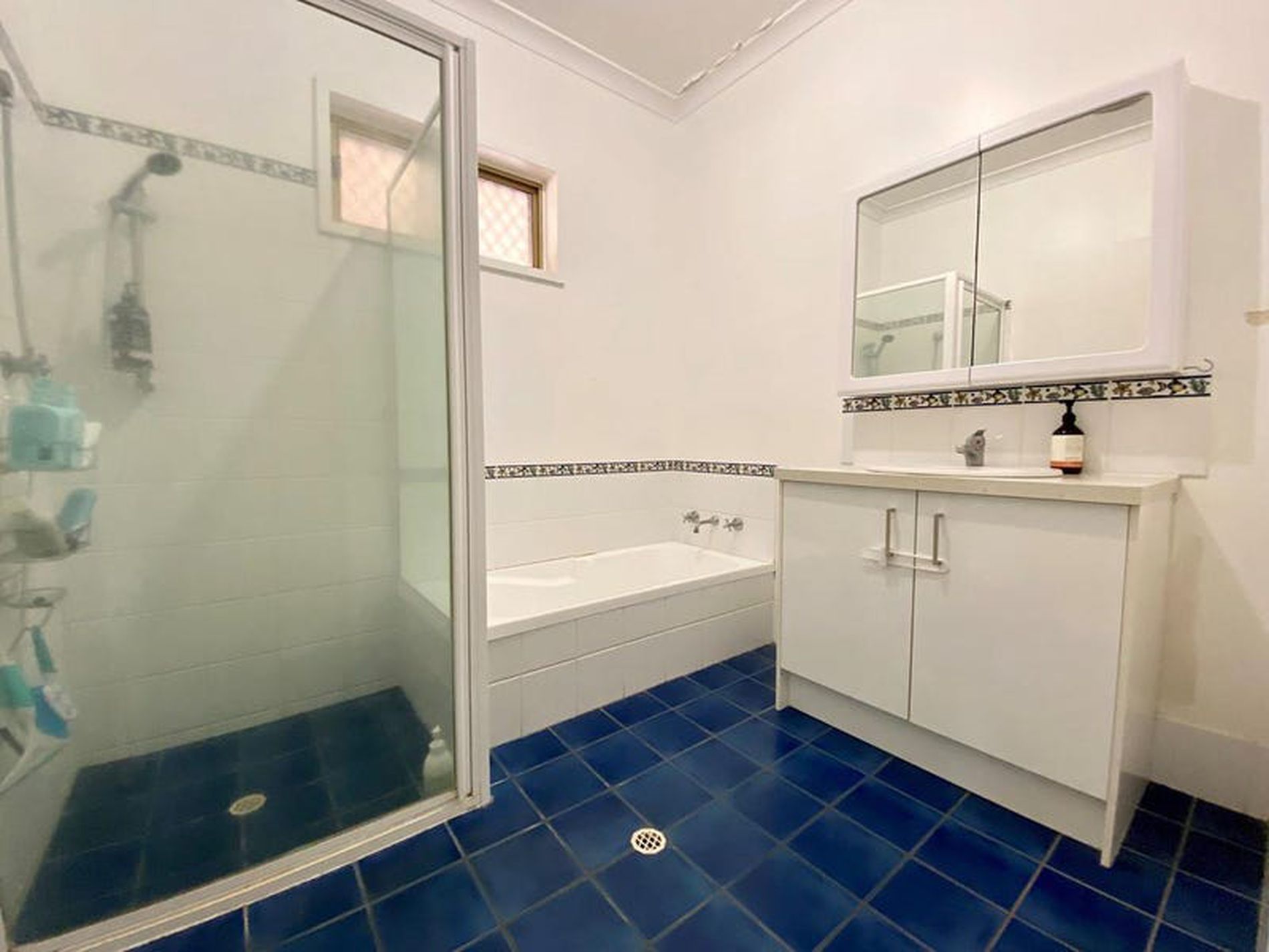 - One bathroom with separate bath and shower