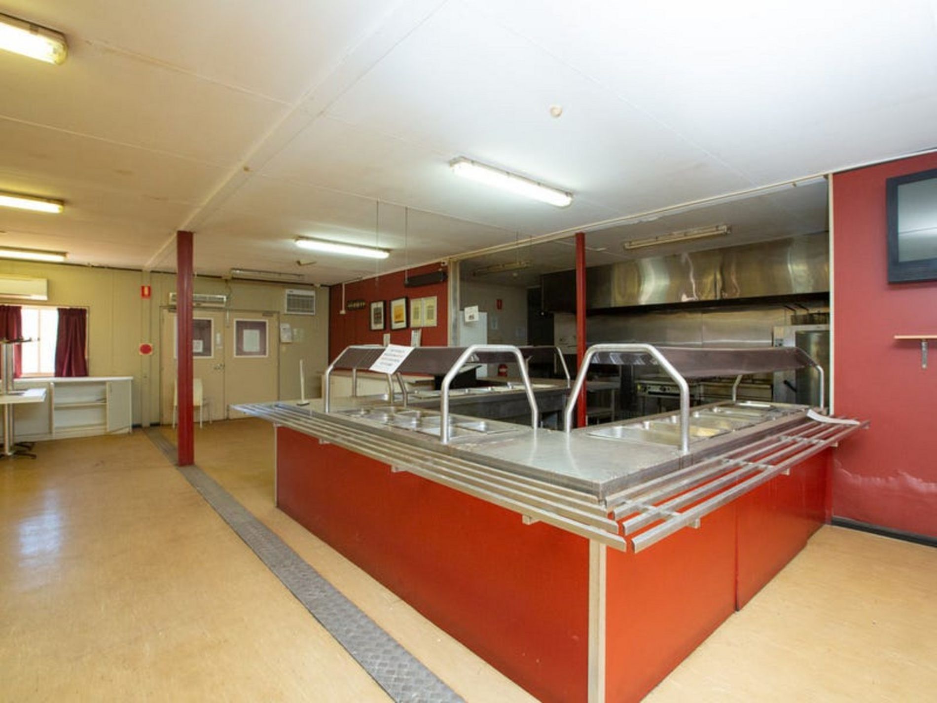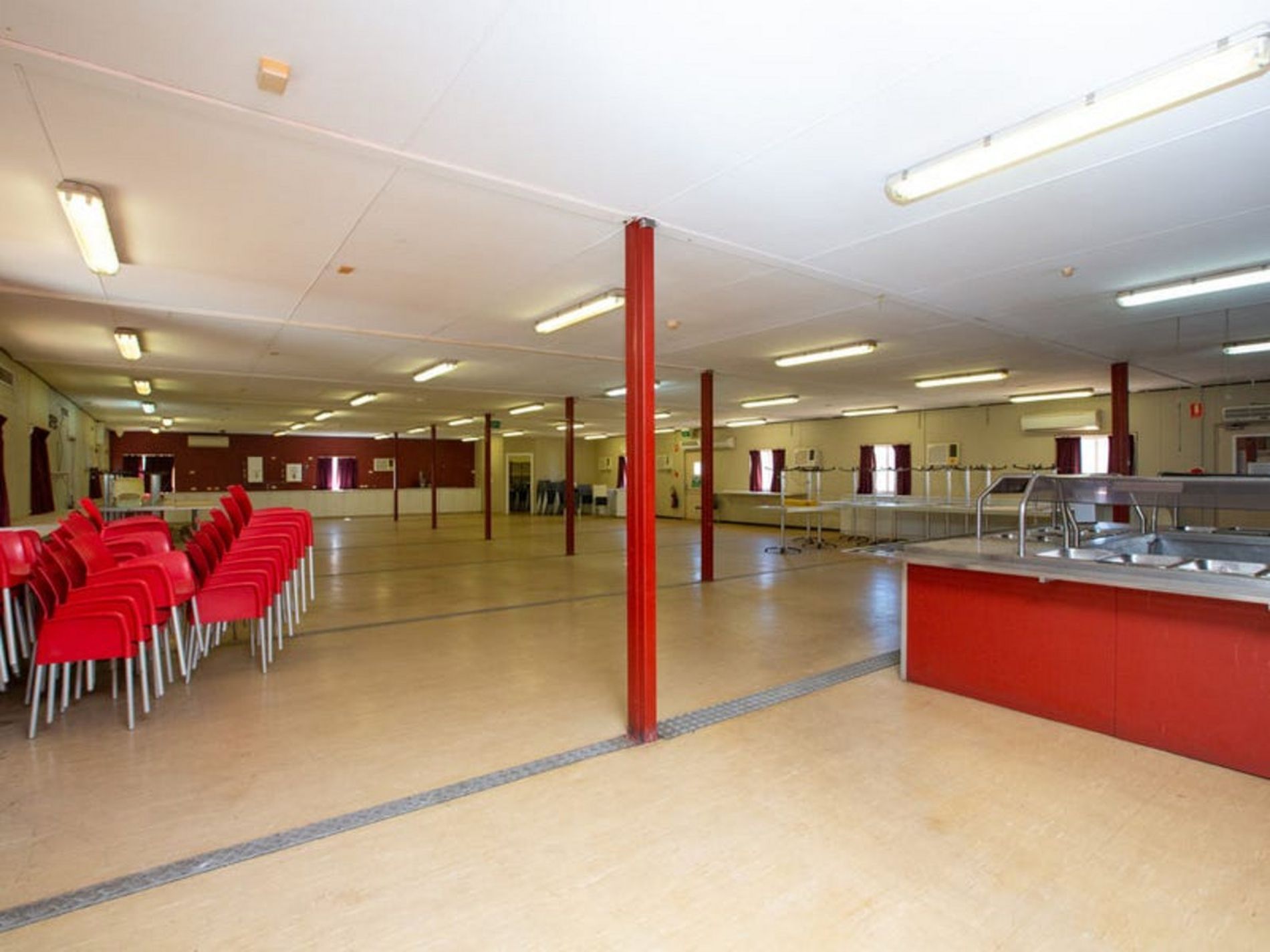 Huge communal eating area with huge kitchen and freezers