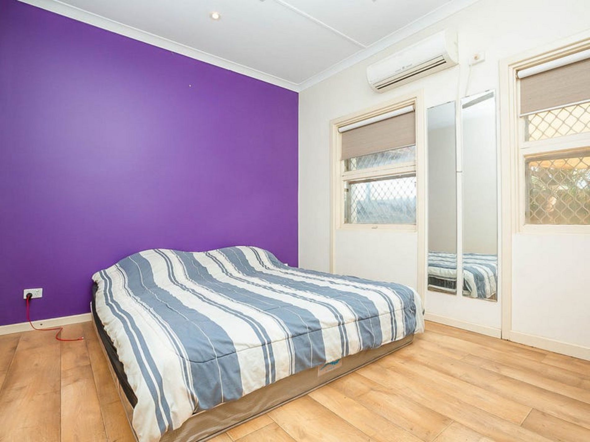 - Wood look floating floors, down lights, ceiling fans, split system air con and window treatments throughout