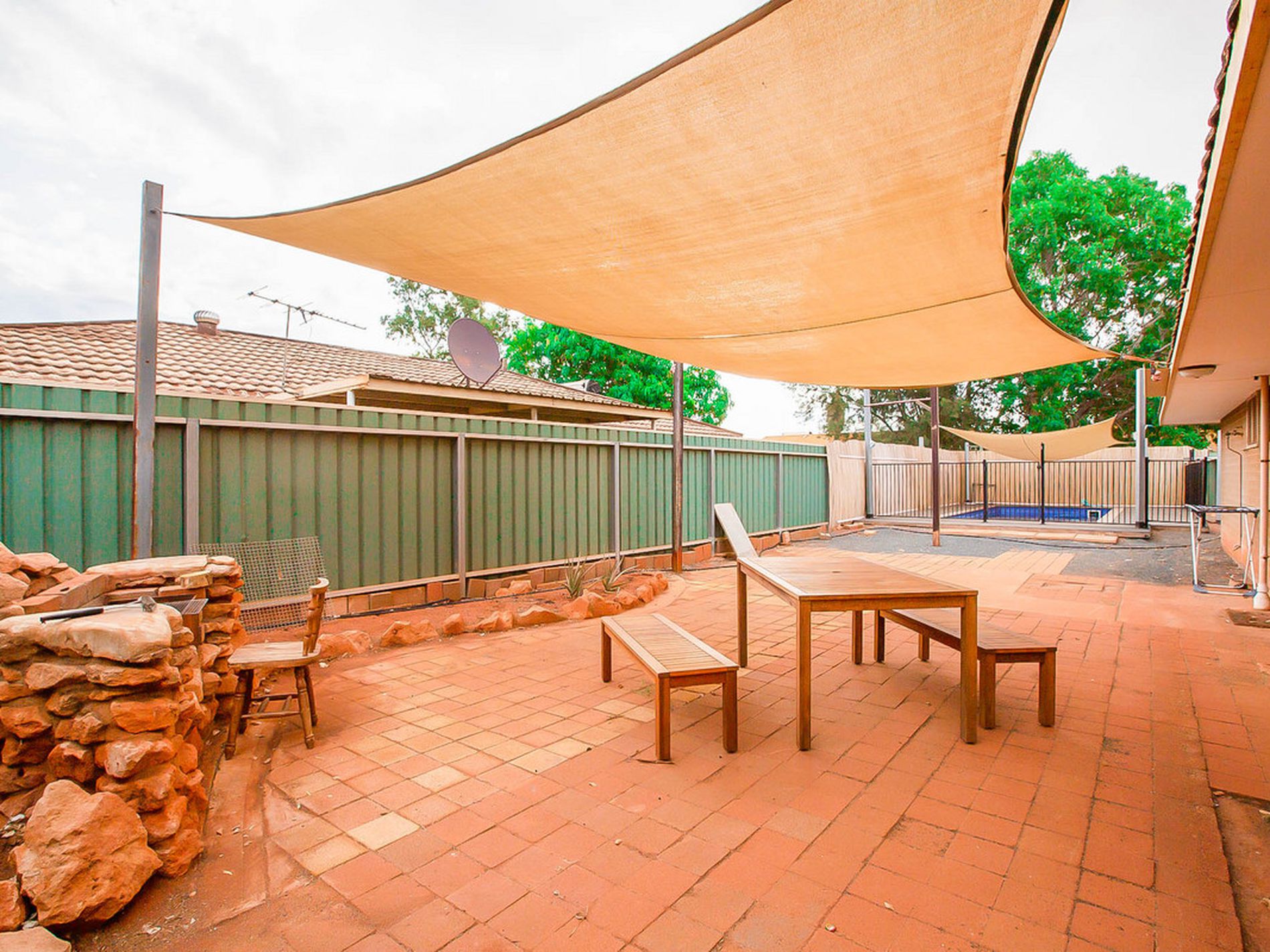 - Paved entertaining area overlooks the pool and is shaded from a large shade sail - this is the perfect place to enjoy a family BBQ while the kids play in the pool